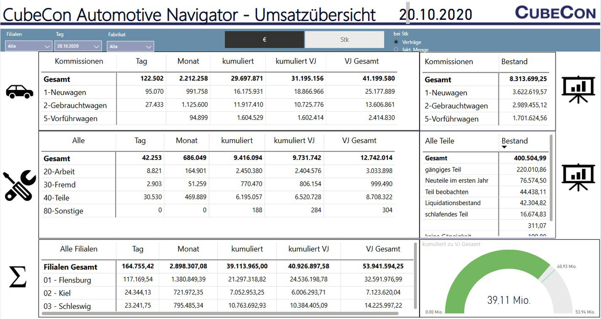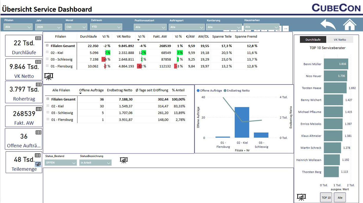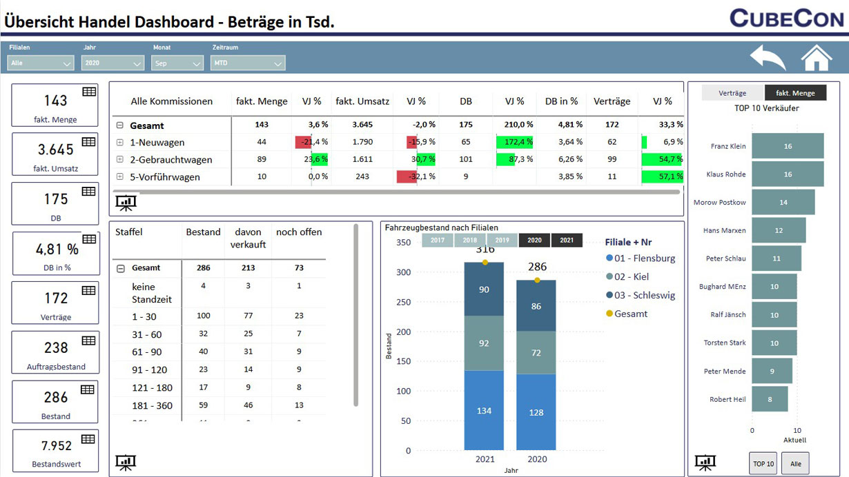 - Verkaufstatistik nach Filialen, Mitarbeiten, Fahrzeugen, Kunden